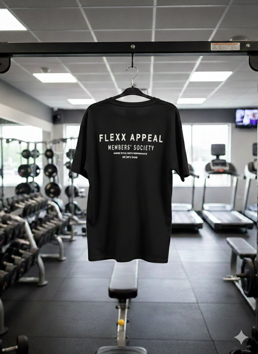 Crafted from soft, breathable fabric, it offers all-day comfort while maintaining structure and drape. The bold Flexx Appeal Members’ Society print adds a premium, understated edge—made to represent discipline, performance, and belonging.